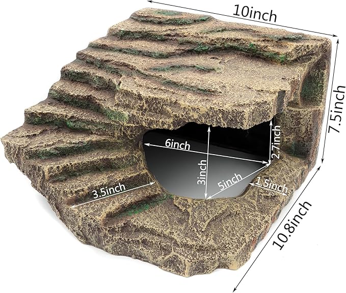 Resin Reptile Hideouts Cave Habitat Decor for Gecko Leopard Lizards Toad Turtle (B- Extra Large)