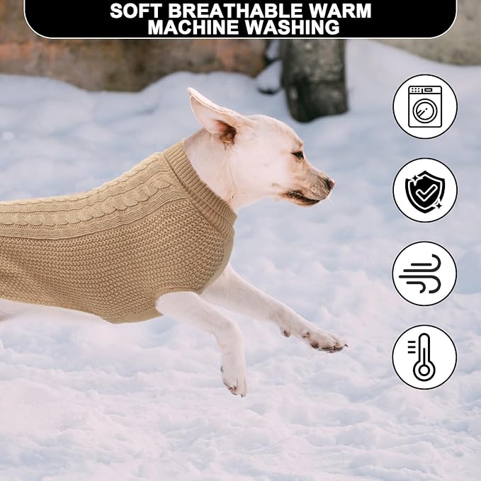 XXL Dog Sweater, Classic Cable Knit Warm Dog Sweatshirt with Reflective Yarn for Girl Boy, Halloween Fall Winter Coat Turtleneck Pullover Clothes Apparel for Small Medium Large Dogs, Khaki XXL