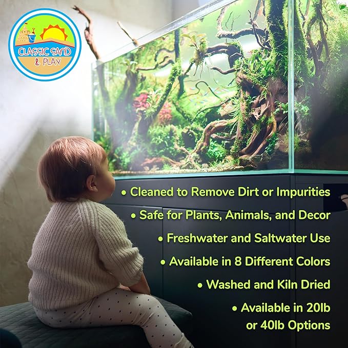 CLASSIC SAND & PLAY Natural Aquarium Sand for Freshwater and Saltwater Tanks, 20 lb. Bag, Improves Filter Life and Filtration Process, Pre-Washed Fine Sand, Rainbow