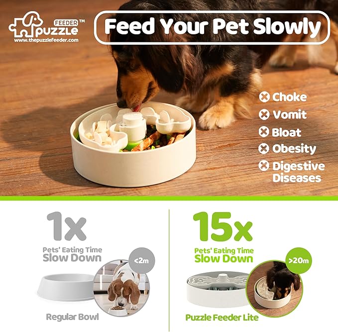 - Adjustable 1x-15x Slowing Speed: Wave and bone-shaped puzzle inserts slow eating speed by up to 15x, helping puppies who gulp food too fast stay safe while keeping meals fun