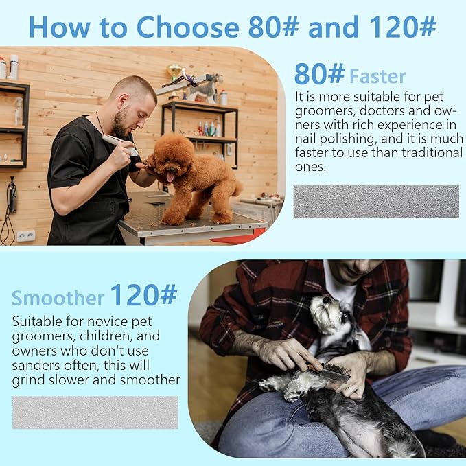 - Easy to Use: With the grinder, you can easily control the speed and smoothness of sanding. Let dog enjoy the fun of nail polishing. Don't forget to reward your dog for completing the grooming