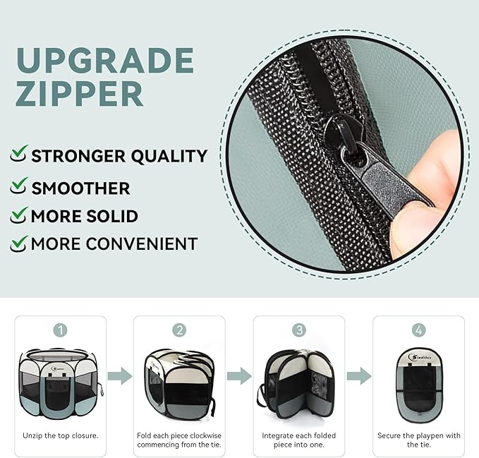 - 【Easy to use】The pet playpen on the side of this pet pen can be easily rolled up and pasted, making it easy for your pet to get in and out of the pet pen. Close the door and keep your pet safely inside. The detachable semi-mesh zipper top can be easily removed for indoor use and closed for outdoor use to provide shade. Make sure your pet is comfortable in any environment.
