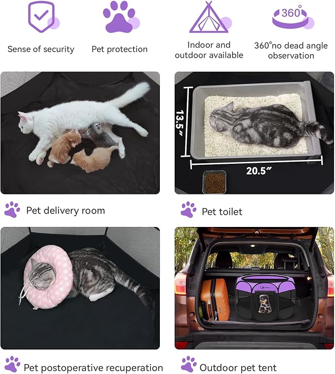 Dog Cat Playpen, Puppy Pet Playpen, Small Dogs Tent Crates Cage Indoor/Outdoor, Portable Pop Up Dog Kennel Playpen with Carrying Case for Dogs/Cats/Rabbits,Purple
