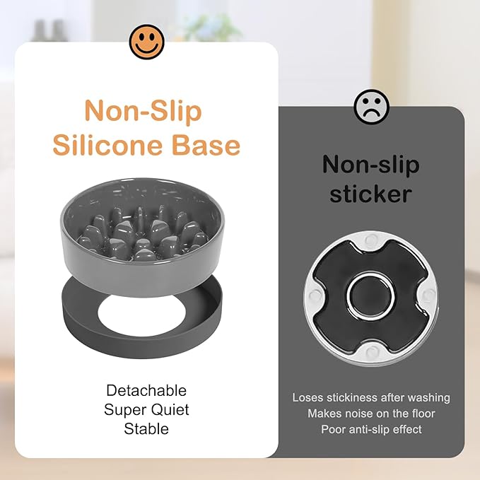 - Quiet & Non-Slip Silicone Base: Sted dog slow feeder is designed with a detachable silicone base that provides you with a quiet experience and and ensures the bowl won't move around when eating, effectively addressing the problem of messy floors. The detachable base makes cleaning convenient when it's removed. Sted dog food bowls help you maintain a tidy and peaceful home.