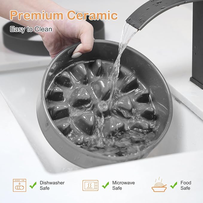 - Food-Grade Materials for Pet's Health: Sted dog bowl slow feeder is crafted from food-grade ceramic, providing assurance of food safety for your dog and effectively preventing chin acne. Compared to plastic dog bowls that are prone to bacterial growth and odors, our slow feeder dog bowls not only maintain hygiene but also eliminate potential dangers to your dog's health. The ceramic dog bowls are sturdy and durable, avoiding accidental ingestion caused by cracks and breaks.