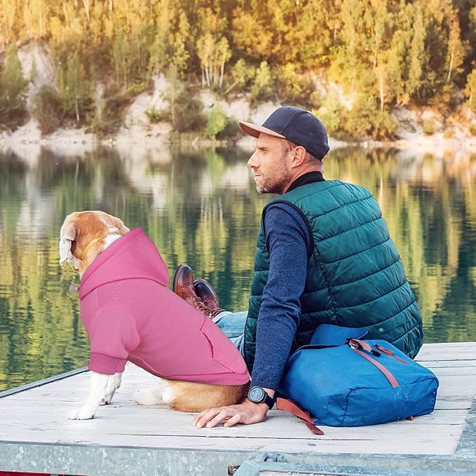 - ★TIMELESS CLASSIC WITH POCKET: Our dog hoodie features a classic solid color design that exudes timeless charm and sophistication. The addition of a functional pocket enhances its practicality, providing a convenient spot to store toys or treats for interactive playtime with your furry companion.