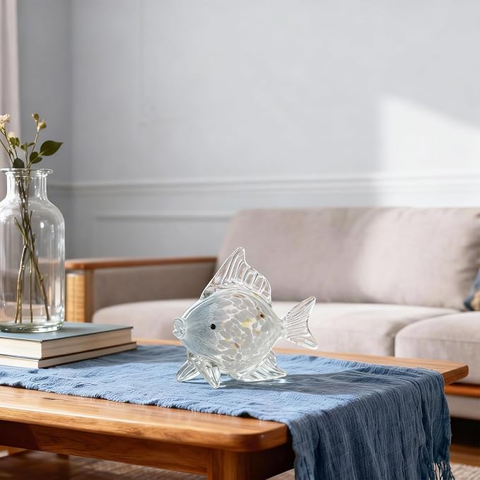 - Serene Ocean Vibes in Every Space: Whether placed as a centerpiece or a brilliant addition to an aquarium, this glass fish decor infuses maritime and beach house decor essence into any environment. Its presence is a breeze of fresh ocean air, enhancing nautical decorations and themes with its tropical glass fish decor appeal.