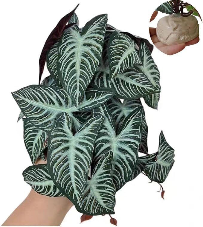 KERUIDENG Reptile Plants,Terrarium Decor,Amphibian Habitat Decor,Artificial Plants for Gecko Chameleon Snake Tortoise Tank Accessories with Base(Xanthosoma sagittifolium)