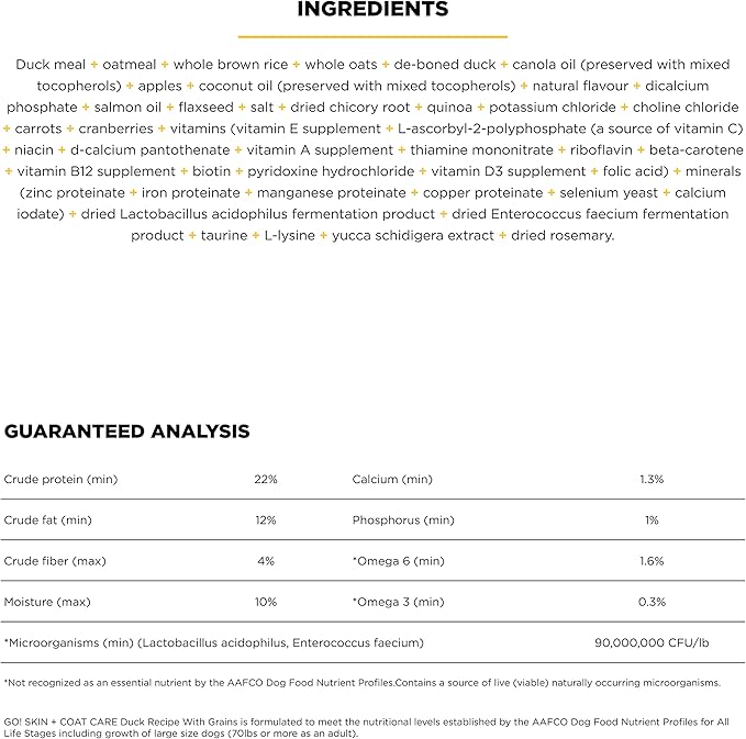 Go! Solutions Skin + Coat Care, Dry Dog Food, Duck Recipe with Grains, 22 lb Bag