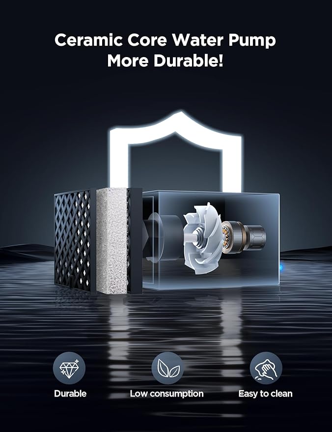 - Lock-up and Anti-slip Design: Dual lock-up buttons of pet drinking fountain effectively prevent your naughty pet to turn the water tray over. Non-slip feet make dog fountain stably stay in one place