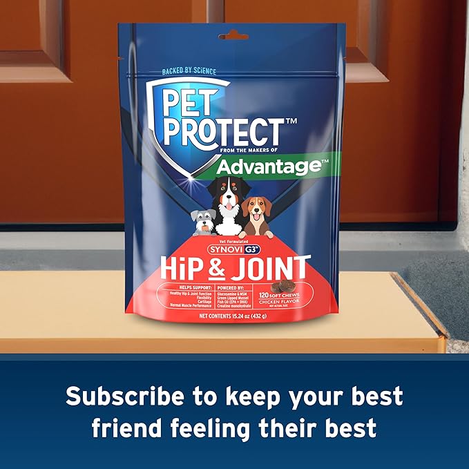 - Contains: One (1) 120-count bag of Pet Protect Vet-Formulated Hip & Joint Supplement for Dogs, Chicken-Flavored Soft Chews