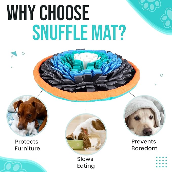 - Slow Feeder & Boredom Relief – Use as a slow feeder to promote healthy digestion and prevent gulping. This sniff mat for dogs keeps pets busy, relieves stress, and reduces destructive behavior indoors or outdoors.