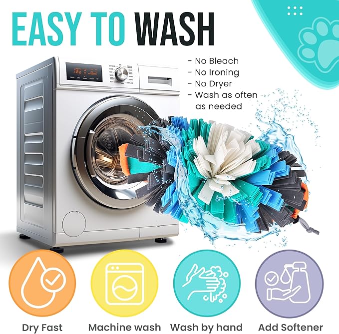 - Safe, Washable & Durable – Made from eco-friendly, non-toxic felt that’s gentle on noses yet tough for daily play. Machine washable design makes this snuffle mat for dogs easy to clean and long-lasting.