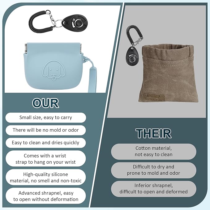 WALLFID Silicone Dog Treat Pouch Small Bag,Auto Closure,with Pet Training Clicker,Walking Bag for Dog and Cat,Pocket Size,Easy to Clean,Odorless (sky blue)