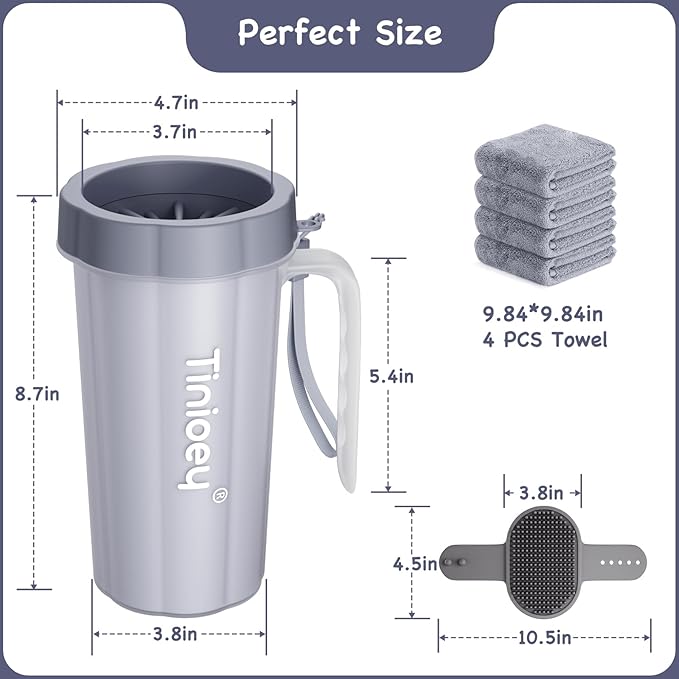 - 【Efficient Cleaning】Tinioey paw washer for large dogs with handle offers a hassle-free solution for keeping your furry friend's paws clean. The innovative design of large dog feet cleaner ensures thorough cleaning, removing dirt, mud, and other debris quickly and effectively. Compared with some dog paw cleanser foam, it is more suitable for cleaning a lot of mud on dog paws or dog legs on rainy days or after walking the dog outdoors.