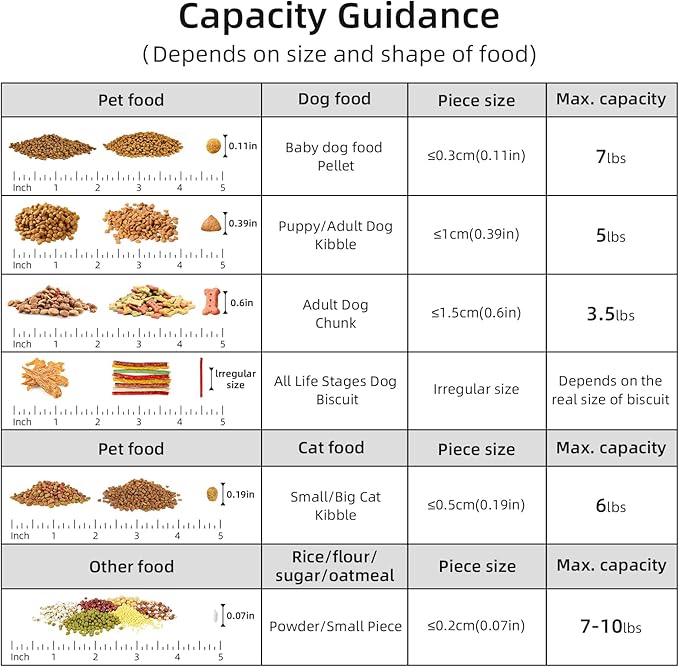 - MULTI-PUrRPOSE STORAGE:Our pet food container is suitable for storing dog food、cat food、bird seed、fish food、rice、 dry food、cereals、oats、cat litter 、flour and other large and small grains, as well as washing powder used at home. It is also a good choice.