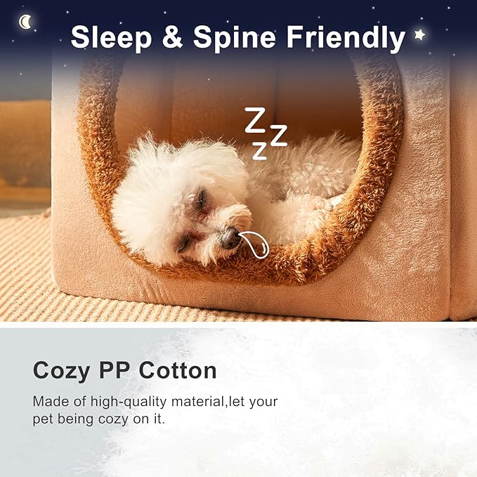- Strong & Comfortable Indoor Dog House: The enclosed dog bed structure is made of special sponge, sturdy and anti-collapse. Dog den features soft faux fur lining & PP cotton cushion. Suitable for all seasons with removable cushion for easy cleaning