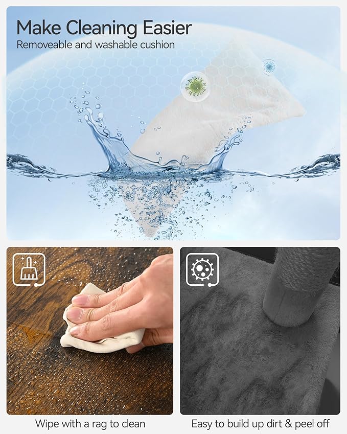 - More comfortable rest area: This big cat tower covered with soft cushions that are covered with 500g/sqm plush, making it easy to clean! These soft cushions are machine washable (you can also replace them with other colors and styles). If the framework and boards of the cat tree get dirty, a simple cloth can wipe away fur and dirt.