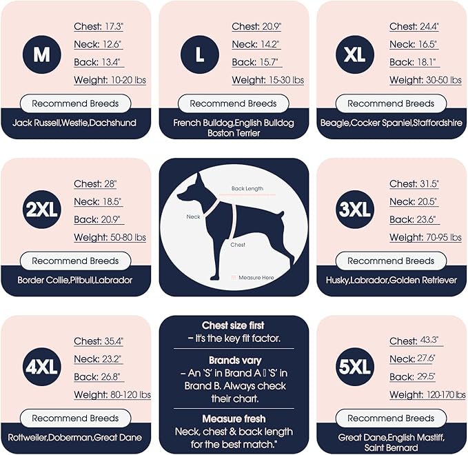 - M-5XL:Our dog sweater is designed for medium and large breeds,with sizes available from M to 5XL.Suit for Schnauzers,French Bulldogs. Beagles,Corgis,Weimaraners,Border Collies,Golden Retrievers,Labradors,Great Danes, Rottweilers, and Dobermans