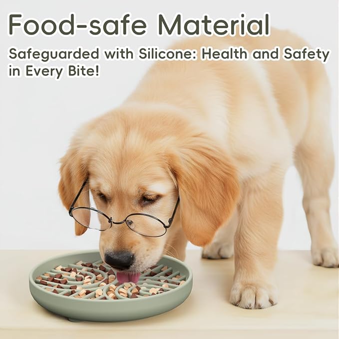 Slow Feeder Dog Bowl, Silicone Puzzle Bowl With Suction Cups for Dogs & Puppies, Anxiety Relief, Slow Eating, Dishwasher Fit, All Breeds, Green