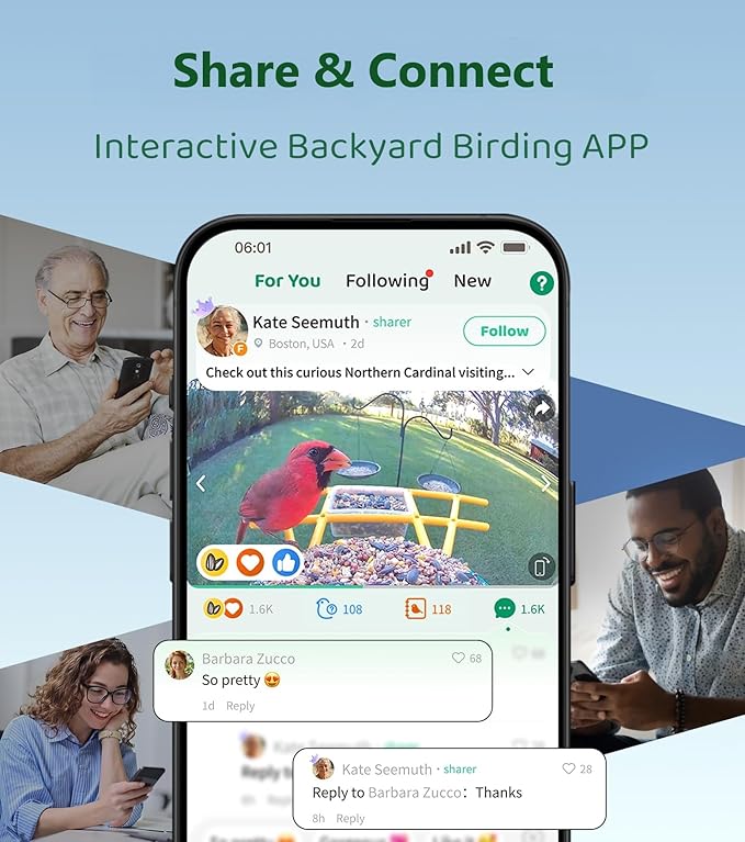 - Interactive Birding App - Our camera bird feeder pairs seamlessly with the COOLFLY app, which features an interactive birdwatching community. Here, you can share your bird discoveries, communicate with fellow enthusiasts, watch bird videos from around the world, and learn more about birds through fun games