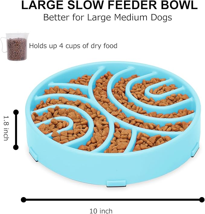 - 【SIZE & DESIGN】Our pet slow feeder bowl diameter: 9.64 Inch. Bottom diameter: 9.84 Inch. Bowl depth: 1.37 Inch. It can hold 3 cups of food. Suitable for small/medium/large dogs.