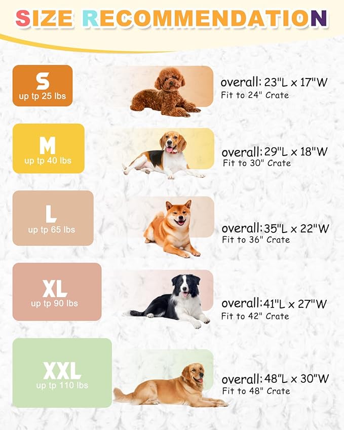 - Size Options - The size fo our dog bed fit well in dog crate.This dog crate pad measures approximately 47"L x 29"W x 1.2"H, works great as a soft dog bed for small size dog up to 110 pounds. A great choice if you want a softer dog crate bed for your pet which is not too thick.