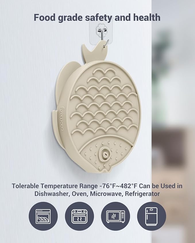Coomazy 2-in-1 Silicone Slow Feeder Dog Cat Bowls, Lick Mat Interactive Puzzle Toy for Pets Food Training, Keeps Dogs Cats Busy, Prevents Puppy Kitty Overeating (Beige, 1.2 Cup)