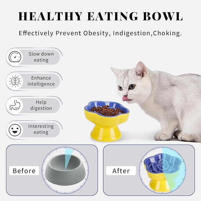 - Effective Slow Feeding Design: The innovative raised patterns and maze-like structure are designed to slow down your cat’s eating pace. This reduction in eating speed helps anti-Vomit, prevent bloating and gastrointestinal discomfort.