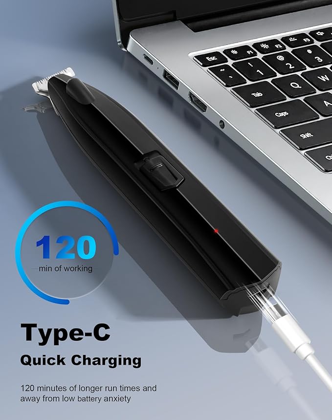 - Rechargeable & Convenient: The cordless dog clipper adopts Type-C fast charging. Fully charged in just 2 hours, it provides over 120 minutes of use. The extra long run time helps you trim multiple small areas of hair and say goodbye to low battery anxiety. The cordless function makes home grooming work more convenient and saves the cost of battery replacement. Easily trim your pet’s hair anywhere. Note: If it fails to charge after use, it may be because it is discharging too quickly, please keep charging for more than 10 minutes.