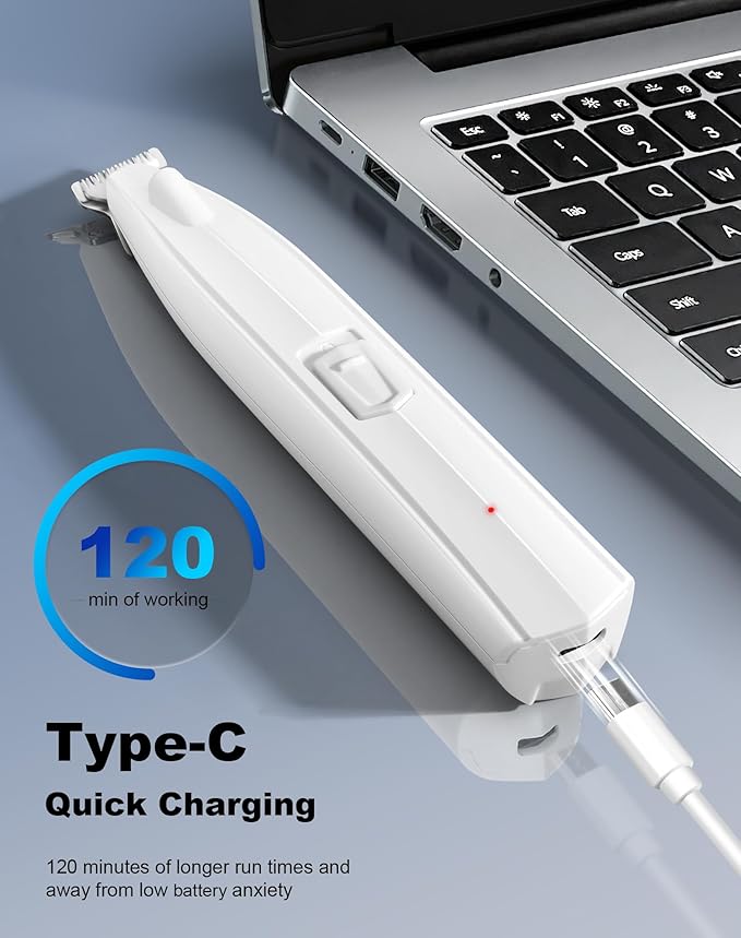 - Rechargeable & Convenient: The cordless dog clipper adopts Type-C fast charging. Fully charged in just 2 hours, it provides over 120 minutes of use. The extra long run time helps you trim multiple small areas of hair and say goodbye to low battery anxiety. The cordless function makes home grooming work more convenient and saves the cost of battery replacement. Easily trim your pet’s hair anywhere. Note: If it fails to charge after use, it may be because it is discharging too quickly, please keep charging for more than 10 minutes.