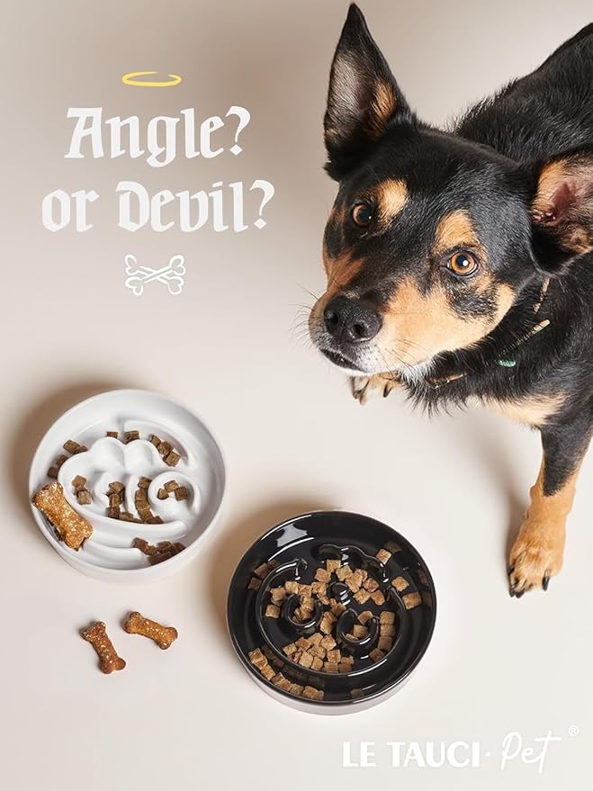 - Slow Down Eating, Bring Dog A Healthy Diet: Fast-eating dogs experience bloat, regurgitation, and obesity easily. Our slow feeder dog bowl design with the ridges and maze pattern helps your dog to eat slower than 10 times. Your dog could change his overeating behavior through a challenge and fun mealtime