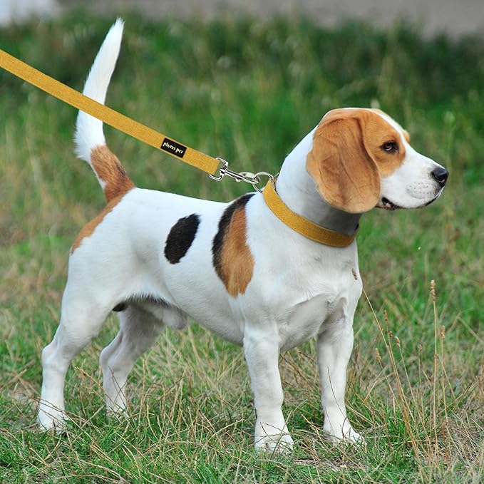Plutus Pet Cotton Hemp Dog Collar and Leash Set, Adjustable Collar for Small, Medium, and Large Dogs, Heavy Duty and Soft on Skin, Yellow, M