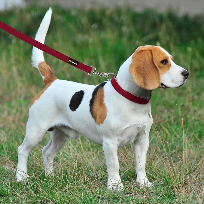 Plutus Pet Cotton Hemp Dog Collar and Leash Set, Adjustable Collar for Small, Medium, and Large Dogs, Heavy Duty and Soft on Skin, Red, XS