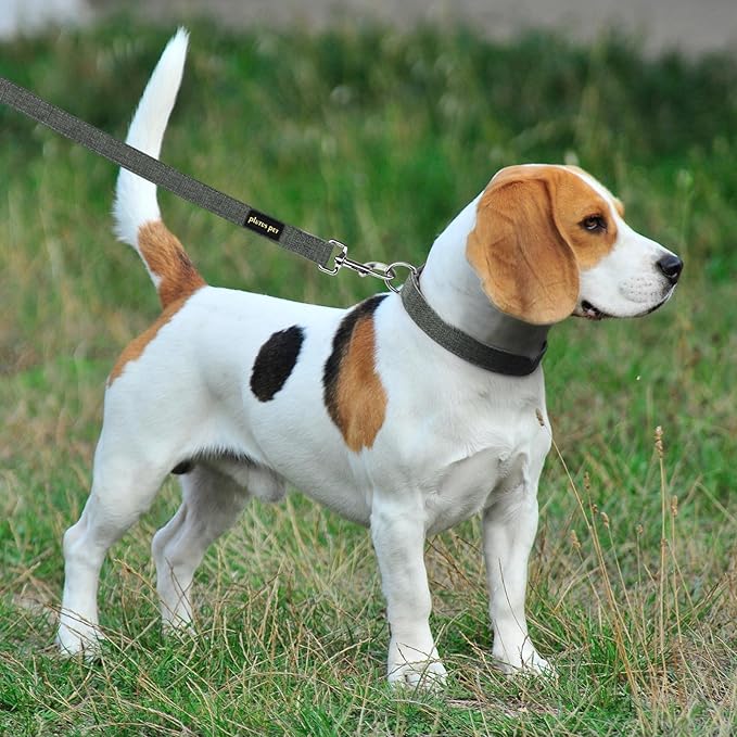 Plutus Pet Cotton Hemp Dog Collar and Leash Set, Adjustable Collar for Small, Medium, and Large Dogs, Heavy Duty and Soft on Skin, Gray, S