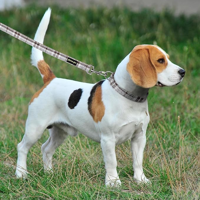 Plutus Pet Cotton Hemp Dog Collar and Leash Set, Adjustable Collar for Small, Medium, and Large Dogs, Heavy Duty and Soft on Skin, Gray Plaid, S