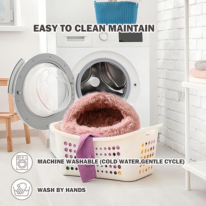 Cat Bed for Indoor Cats, Calming Cozy Cave with Self-Warming Plush, Entire Bed Machine Washable & Anti-Slip Base, Breathable Pet Bed for Small Cats&Dogs All Seasons (Leather Pink, 20 * 20inch)