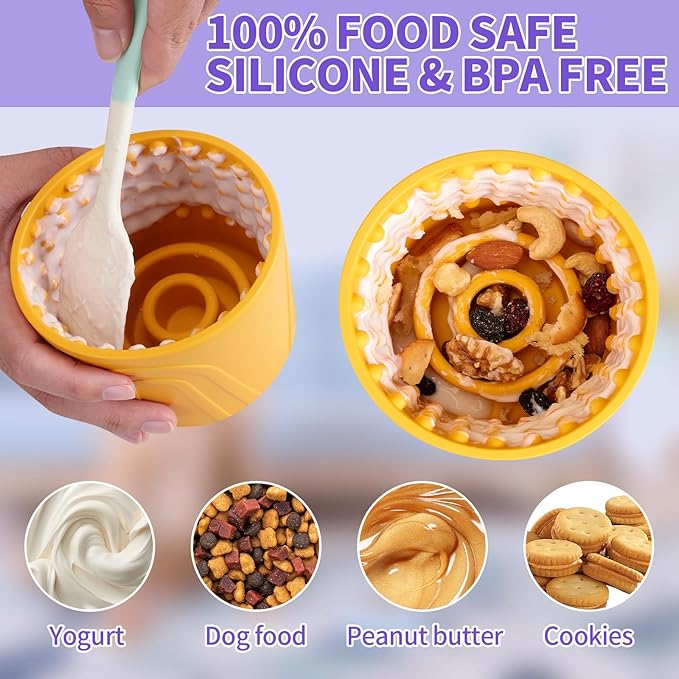 - FOOD-GRADE SILICONE MATERIAL - Made of food-grade durable silicone that is BPA-free, perfect for providing a fun and interactive eating experience for small to large-sized dogs. Tips: It is important to supervise your pet during use, especially if they are known chewers.