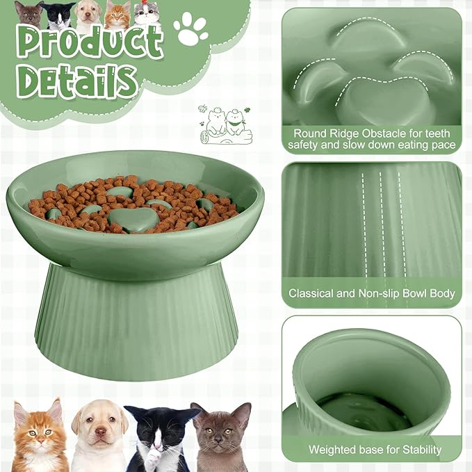 - Package Includes: this set includes 2 pieces of raised slow feeder cat bowls, ensuring that you have plenty of options for your furry friend; With 2 bowls, you can conveniently place the ceramic slow feeder in different areas of your home or use one for food and the other for water
