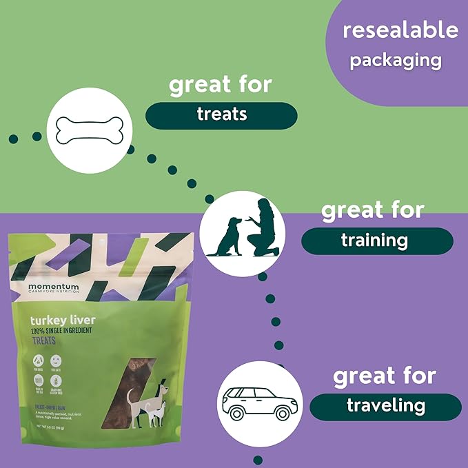 Momentum Carnivore Nutrition Freeze-Dried Turkey Liver Dog Treats & Cat Treats – Single-Ingredient, High-Protein, Grain-Free, Naturally Flavorful & Lean – Made in USA – 3.5 oz Bag