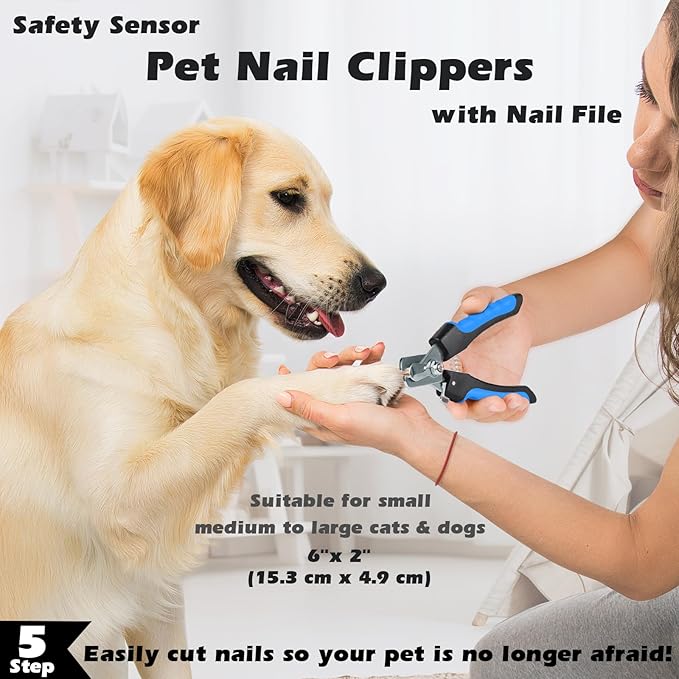- 【Dog&Cat Nail Clipper with Nail File】This dog nail trimmers has a safety guard design which can prevent excessive trimming and damage to the nail bloodline, so your pet is no longer afraid! Ergonomic handles , easy to grip and non-slip while preventing accidental scratches and cuts