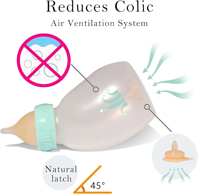 - Bottle ventilation system similar to human babies: no need for ventilation when drinking milk, reducing the probability of choking on milk. A safety protection like giving a baby