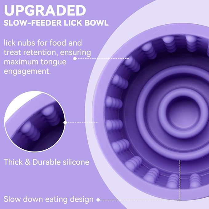 - IMPROVE YOUR PET'S ORAL CARE - Our dog lick bowl features textured surfaces that encourage licking, leading to increased saliva production and better dental health. Its unique design removes leftover food particles and odor-causing bacteria from your dog's mouth, resulting in fresher breath and healthier teeth and gums.