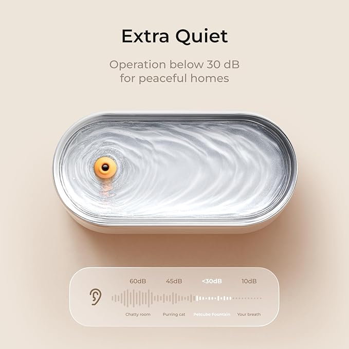 - WITH CARE FOR YOUR CAT — Crafted with high-quality stainless steel basin, the Petcube Fountain’s cat water bowl offers a sleek, durable, and hygienic drinking solution for effortless cat essentials in any home setting