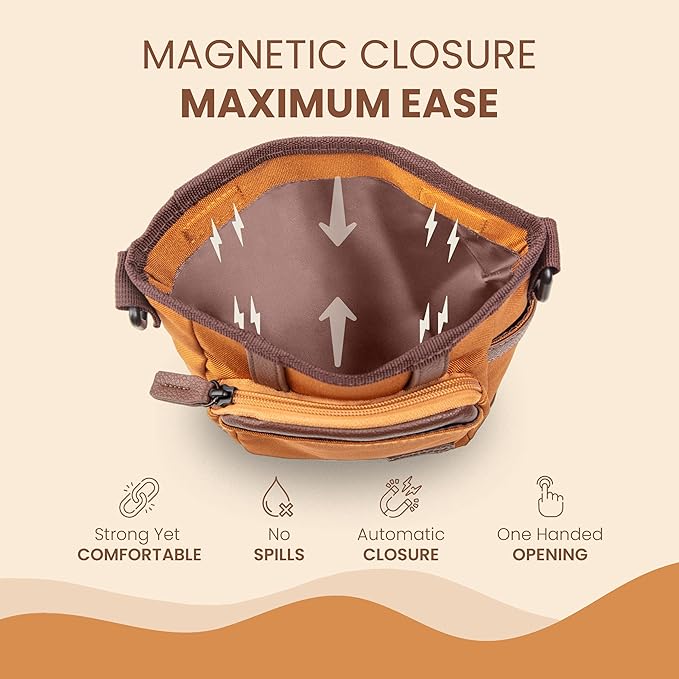 - DURABLE & STYLISH DESIGN: This dog treat pouch features double stitching and a metal buckle for enhanced durability. Its sleek, elegant look and premium material ensure long-lasting use, making it the ideal accessory for dog training or daily outings. An excellent choice for gifts for dog owners who appreciate both style and functionality.