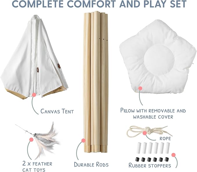 - Interactive Play: This teepee isn't just for sleep. It comes with two feather toys (one as a backup) to keep your cat active, engaged, and entertained, promoting their physical health and well-being.