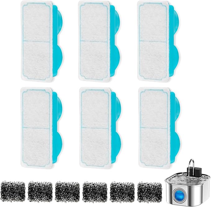 Cat Water Fountain Filter for 108oz/3.2L Wireless Cat Water Fountain,Battery Operated Stainless Steel Pet Fountain(6 Filter + 6 Sponge)
