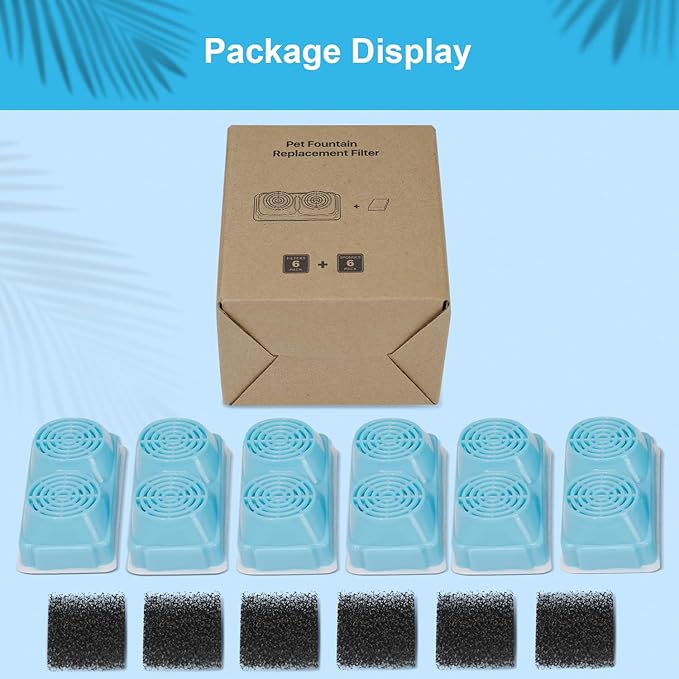 - 【Value Filter Set】: The package including 6 cat fountain filters and 6 black filter sponges.