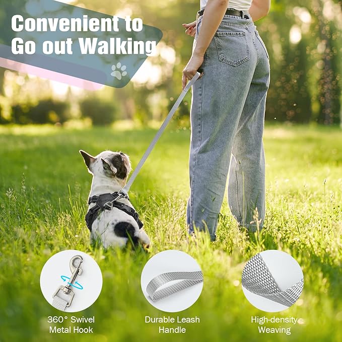 - 【No Pull, No Choke】 The small dog harness with a crossed X-shaped frame at the neck, evenly distributed traction pressure around the pet's chest, providing a comfortable fit and avoiding resistance or pulling, which can prevent choking and effectively reduce the risk of injury.