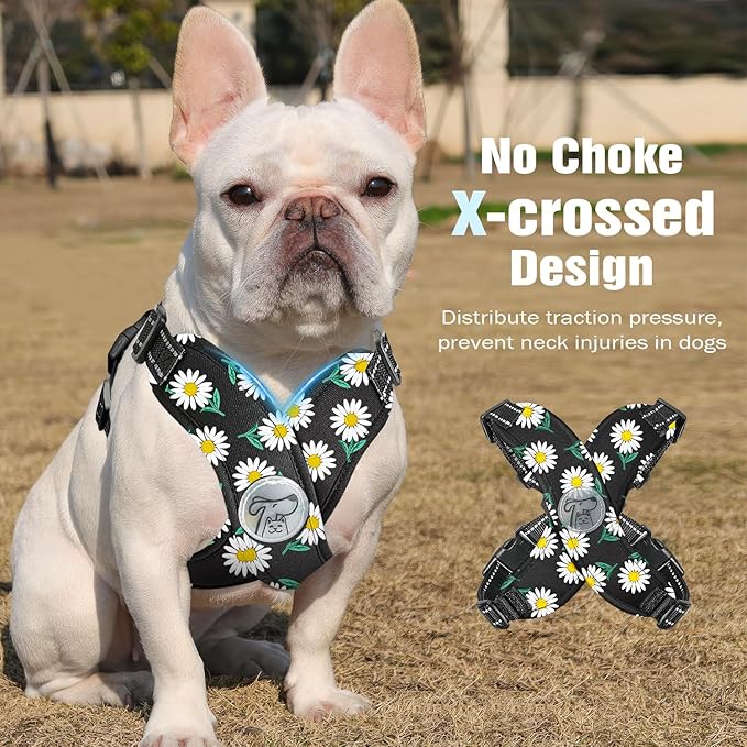 Pawaboo Small Dog Harness and Leash Set, Puppy Harness X-Frame No Pull No Choke, Dog Vest Harness Adjustable for Small Medium Sized Dogs,Soft Breathable Pet Harness for Walking Outing, L, Black Daisy